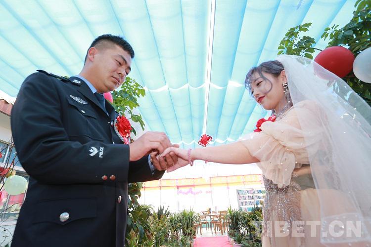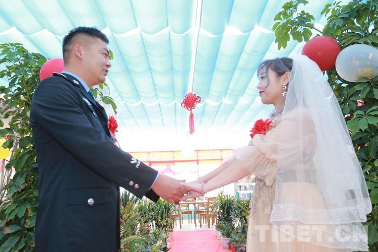 “今天能在警營里完成婚禮,非常的激動。結婚是女人一生中最幸福的時刻,非常感謝單位的領導能給我們這樣的機會,讓我倆一起度過人生中最幸福的時刻。這次的婚禮非常的有意義,將是我們一生中最寶貴的回憶,警營讓我成為最美麗的新娘?!毙履锿鯊溺鴾I激動地說。(中國西藏網(wǎng) 通訊員/張拴根 記者/王佳豪)