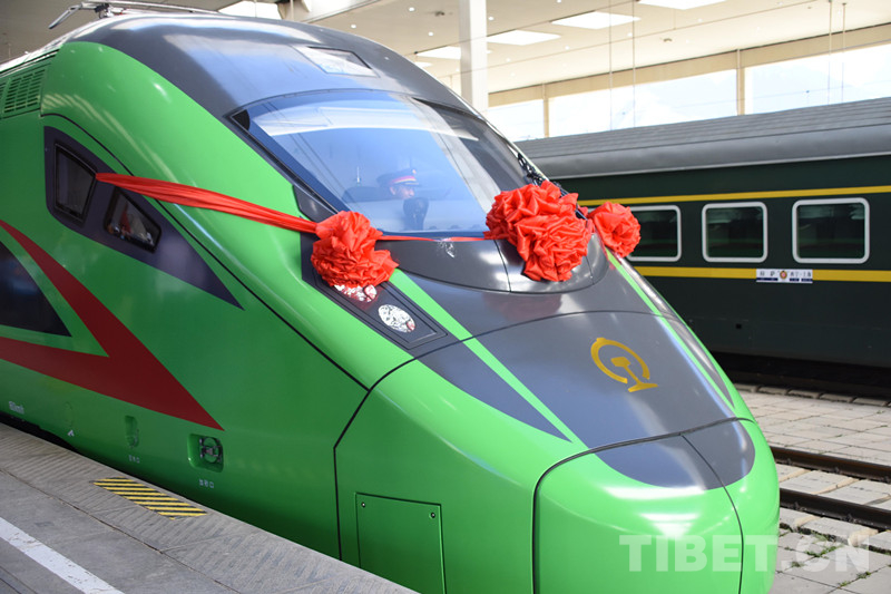 圖為即將開往林芝的復(fù)興號 攝影:次旦拉姆