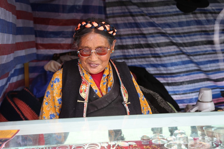 已近古稀之年的羅布和央金從1992年起,便年年參加打隆物交會(huì)??钍蕉?、口碑好,純手工鍛造,再加上30年的堅(jiān)守。讓他們經(jīng)營(yíng)民族首飾的攤位成為了打隆物交會(huì)的必去“打卡地”之一。