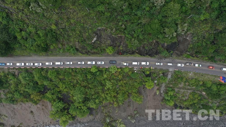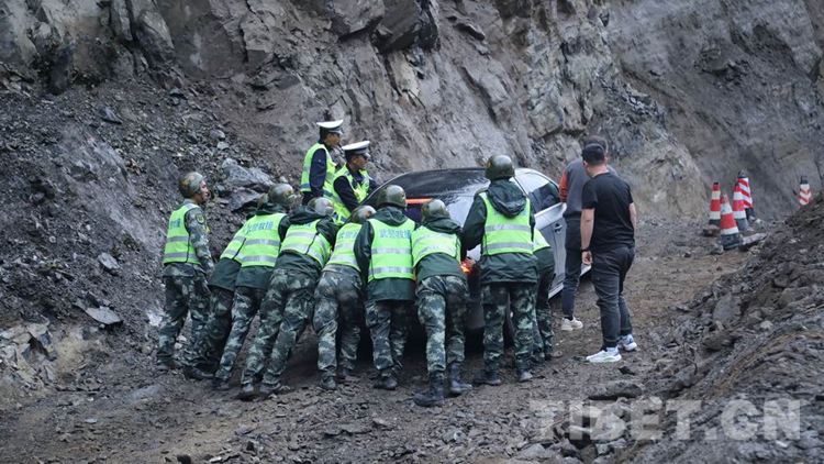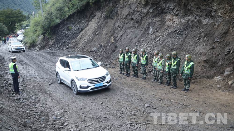 中國(guó)西藏網(wǎng)訊 8月28日18時(shí)許,經(jīng)過武警第二機(jī)動(dòng)總隊(duì)某支隊(duì)官兵連續(xù)5天的艱苦鏖戰(zhàn),搶修出一條長(zhǎng)215米的便道,使因路基垮塌造成國(guó)道318線西藏自治區(qū)林芝波密境內(nèi)段斷通的道路成功恢復(fù)通行,可供小型車輛單向通行。在武警官兵的指揮下,滯留兩端的車輛有序帶隊(duì)安全通過。