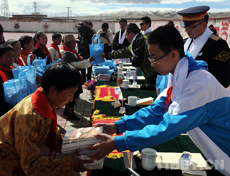為了幫助西藏貧困地區(qū)的藏族孩子學(xué)到更多的科學(xué)文化知識(shí),豐富他們的業(yè)余文化生活,新華社北京分社在捐贈(zèng)中號(hào)召黨團(tuán)員積極參與,共捐藏漢文書(shū)籍1000多冊(cè),并委托我將這些書(shū)送到西藏孩子手中。