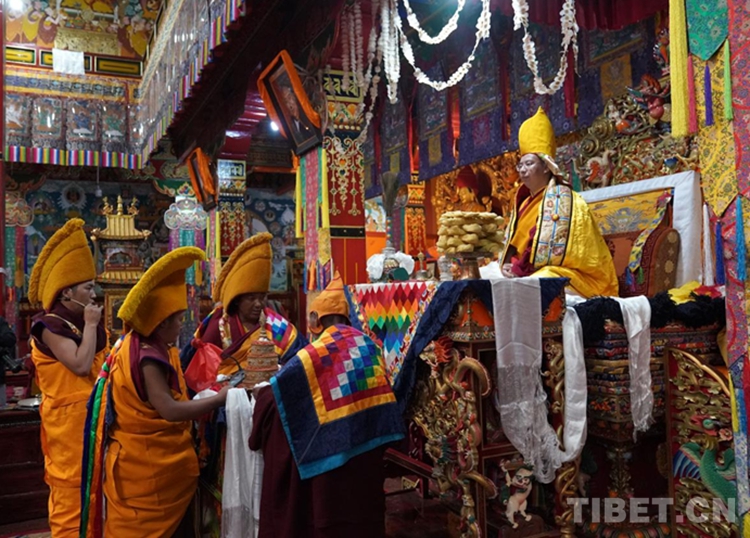格培林寺,始建于公元1738年,屬藏傳佛教格魯派。寺管會(huì)主任桑母曲珍激動(dòng)地說(shuō):“我曾經(jīng)在扎寺有緣拜見(jiàn)班禪大師,大師是一位知識(shí)淵博,佛教造詣深厚,各方面都值得敬仰和崇拜的高僧。今年一聽(tīng)到大師要到我們寺院,僧尼們都非常激動(dòng),早早地開(kāi)始準(zhǔn)備迎接。今天大師終于蒞臨我們寺院,為我們講經(jīng)傳法、賜福摸頂、發(fā)放布施、給予教誨與勉勵(lì),我們收獲很大,一定會(huì)更加努力精進(jìn)學(xué)習(xí),提高宗教造詣和自身素質(zhì)?!?/p>