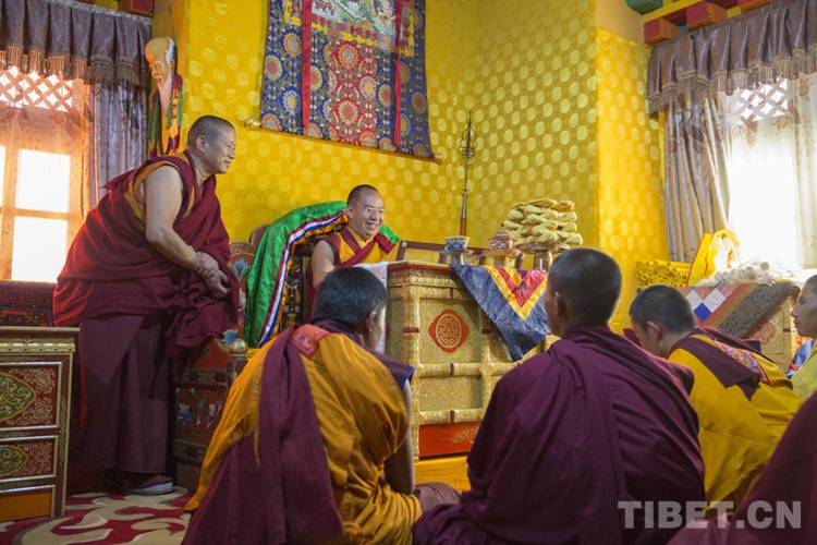 圖為班禪在納塘寺抽查僧人背誦經(jīng)典 攝影:歐帆
