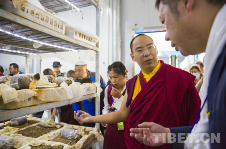 圖為班禪察看基地產(chǎn)品 攝影:歐帆
