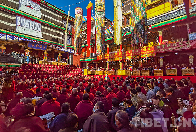 旦科代表西藏自治區(qū)黨委、政府講話:考取“嘎欽”佛學(xué)學(xué)位,是班禪額爾德尼?確吉杰布精進(jìn)學(xué)識(shí)、弘法利生畢生事業(yè)中的關(guān)鍵環(huán)節(jié),是二十五年來(lái)勤學(xué)苦修、福慧俱增的直接體現(xiàn),是在宗教修為上全面成熟的重要標(biāo)志,更是習(xí)近平總書記和黨中央教育培養(yǎng)的重大成果。這是扎什倫布寺的一大喜事,是藏傳佛教界的一大盛事,是寺廟僧尼、信教群眾期盼已久的一件大事。