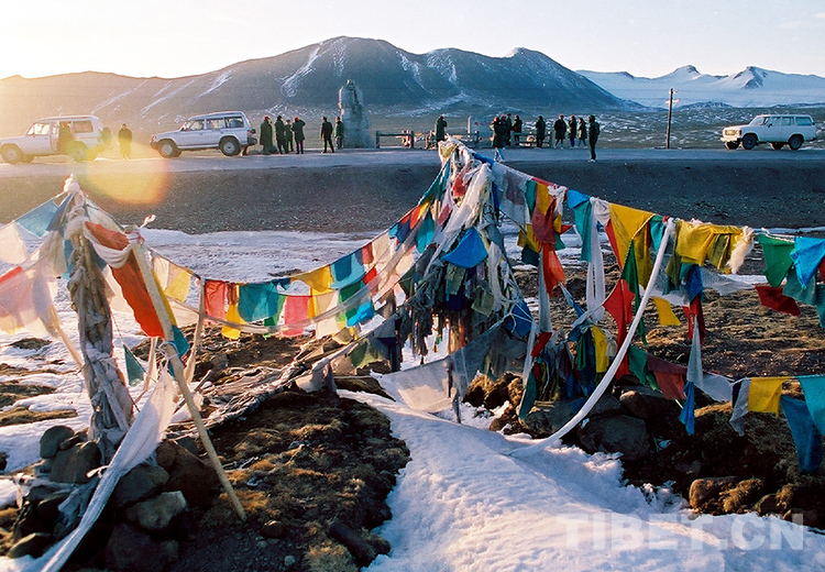 這是青藏公路所經(jīng)過(guò)的海拔為5231米的唐古拉山口,現(xiàn)已成為游人的觀光之地(唐召明1996年攝)
