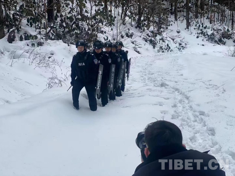 圖為姜凱峰(右下)為西藏出入境邊防檢查總站林芝邊境管理支隊民警拍攝工作照
