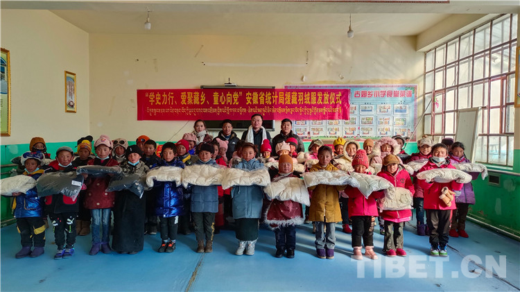 據(jù)了解,活動(dòng)得到西藏自治區(qū)統(tǒng)計(jì)局、安徽省統(tǒng)計(jì)局、安徽省再貸款公司等單位企業(yè)以及愛(ài)心人士的積極響應(yīng),短短一個(gè)星期就購(gòu)買(mǎi)到1013件羽絨服。為讓孩子們?cè)缛沾┥嫌鸾q服,援藏干部們決定立即將羽絨服送到古姆鄉(xiāng)小學(xué)。12月13日一早,他們一早就從拉薩出發(fā),日夜兼程,冒著零下二十多度的低溫大雪天氣,穿過(guò)十多個(gè)海拔5000米以上的埡口,行程1500多公里,終于在15日下午16點(diǎn)39分將羽絨服送到了孩子們手中,讓207名孩子在零下30多度寒冬中感受到了春天般的溫暖。