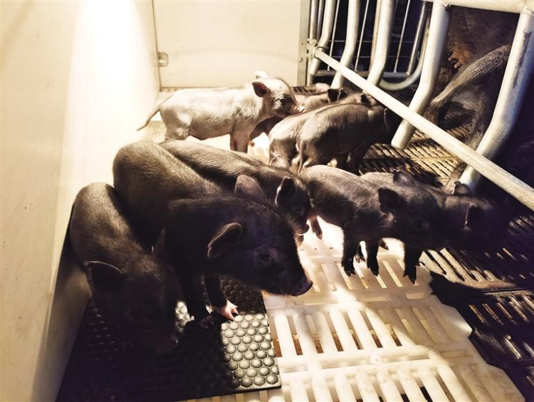 據(jù)了解,2021年8月中旬,體細(xì)胞克隆藏豬的配種工作已經(jīng)完成并成功懷胎。經(jīng)過(guò)114天左右精心護(hù)理,2021年12月8日首批9頭純種藏豬出生,均重0.55kg,體重最大的0.7kg。藏豬寶寶毛色純黑、眼睛通透、四肢穩(wěn)健,體細(xì)胞克隆母豬奶水充足,目前健康和生長(zhǎng)狀況良好。