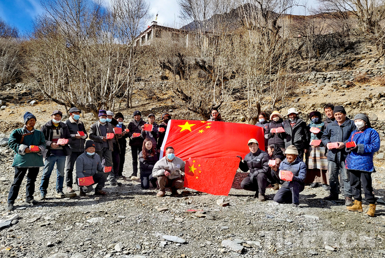 中國西藏網訊 1月13日,西藏自治區(qū)山南市浪卡子縣卡熱鄉(xiāng)黨委和拉薩市委辦駐邊據(jù)村工作隊組織的“同畫一面旗、共愛一個家”活動在邊據(jù)村舉行??徉l(xiāng)6個村(居)的第一書記和邊據(jù)村的黨員、群眾代表參加此次活動。