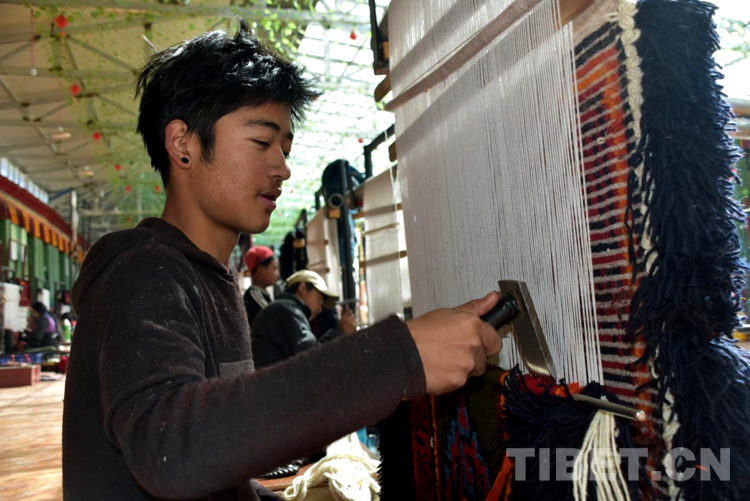 “剛到合作社每天工資160元,一個(gè)月下來就有小四千,一年收入妥妥的超3萬元。”說話間,巴頓也沒有歇下手中的活計(jì)。穿桿結(jié)扣,勤勞的雙手一直忙碌著,在合作社6年多,他已經(jīng)比較熟練地掌握了卡墊織法、色彩以及紋樣。如今,卡墊接活都是以承包方式,往往供不應(yīng)求,一家人住在裝修一新的藏式小院里,妻子現(xiàn)在也在參加合作社新員工培訓(xùn),四個(gè)孩子都進(jìn)了公立學(xué)校讀書,享受了義務(wù)教育免費(fèi)“三包”政策。