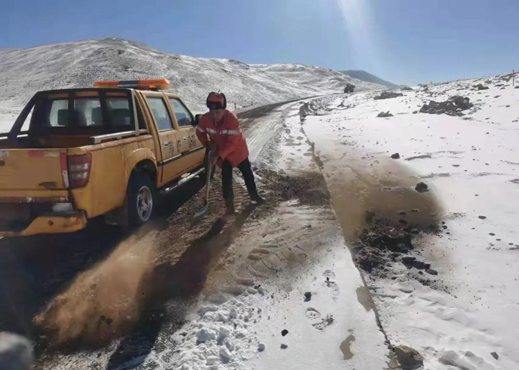 面對雪情,為保證行人安全、道路暢通,阿里國省公路接管組全體干部職工以雪為令,在零下30多度低溫下克服高寒缺氧,戰(zhàn)風(fēng)雪、斗嚴(yán)寒,以公路人頑強(qiáng)拼搏的精神,夜以繼日,奮戰(zhàn)在除雪保通的第一線,保障了春節(jié)期間所轄國省公路安全暢通。