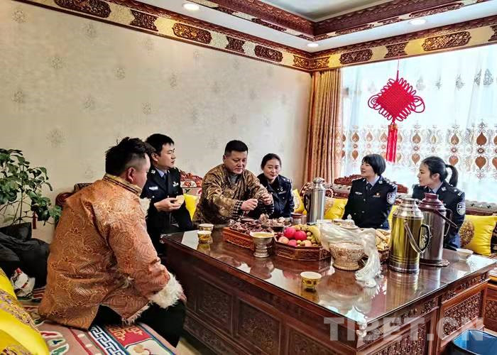 在藏歷水虎年到來(lái)之際,拉薩出入境邊防檢查站3名民警利用勤務(wù)間隙,帶著精心準(zhǔn)備的節(jié)日慰問(wèn)品前往結(jié)親民警尼瑪拉姆家中拜年。熱情好客的尼瑪拉姆一家用特色風(fēng)干肉、煮牛肉、卡塞、時(shí)鮮水果等美食款待了前來(lái)結(jié)親的民警們。