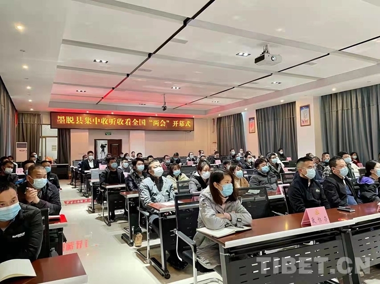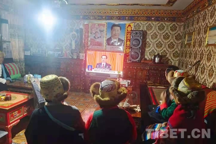圖為西藏各地干部群眾收聽收看十三屆全國人大五次會議開幕會