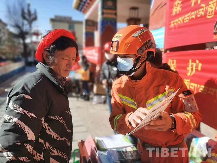 圖為昌都市森林消防支隊(duì)芒康縣駐防分隊(duì)在芒康縣城及周邊鄉(xiāng)鎮(zhèn)開(kāi)展防火宣傳