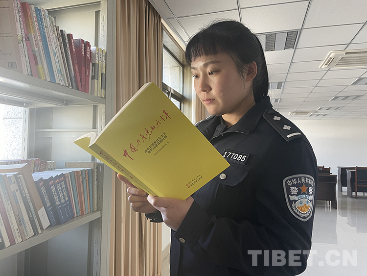 圖為西藏林芝背崩邊境派出所民警李倩在閑暇的時(shí)候閱讀紅色書籍 攝影:呂恒剛