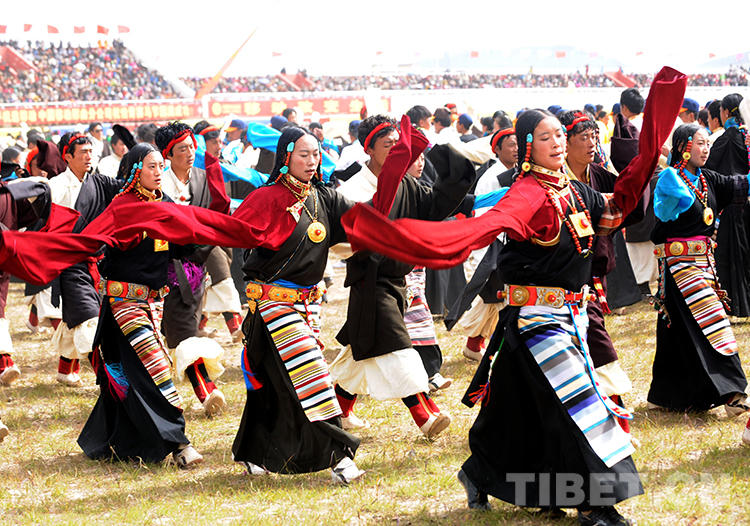 西藏民間歌舞五光十色,風(fēng)格迥異,種類(lèi)繁多。農(nóng)牧民群眾自豪地說(shuō),“天上有多少星星,我們就有多少調(diào)。我們做什么事,就有什么事的歌,什么事的舞?!?/p>