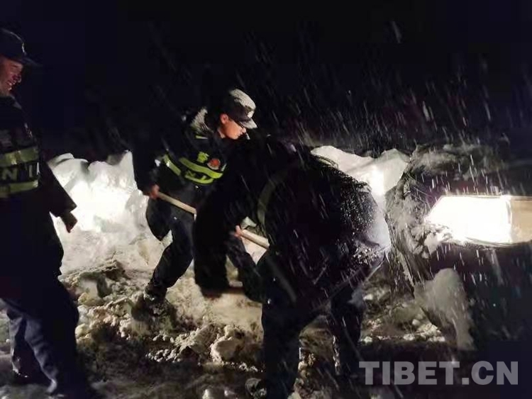 在前往救援途中,民警陸續(xù)又接到3起報(bào)警求助電話??梢源_定至少4輛車輛被困。救援工作刻不容緩,竹瓦根邊境派出所民警頂風(fēng)冒雪,經(jīng)過3個(gè)小時(shí)的艱難長途跋涉,克服高海拔缺氧,道路側(cè)滑等危險(xiǎn)和困難,及時(shí)趕到事故現(xiàn)場開展救援。截至4月2日凌晨3點(diǎn)30分,竹瓦根邊境派出所民警先后救助被困車輛4臺,救助被困群眾8人。在護(hù)送返回途中,一行人員又遭遇雪崩,道路受阻。移民警察和當(dāng)?shù)仞B(yǎng)護(hù)段工作人員共同努力,用2個(gè)小時(shí),打通了一條“生命大通道”,成功將被困群眾和車輛安全轉(zhuǎn)移。