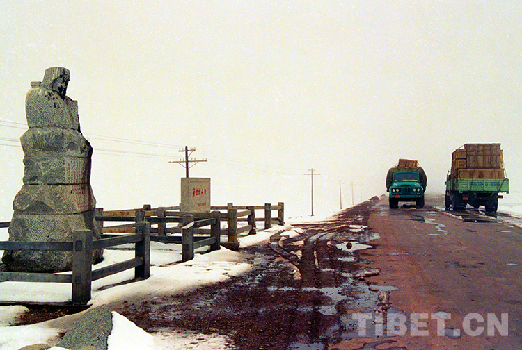 這是藏北高原替代牛羊運(yùn)輸?shù)钠?,正在通過(guò)青藏公路的唐古拉山口(唐召明1988年攝)