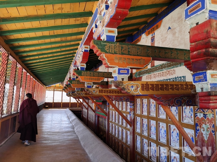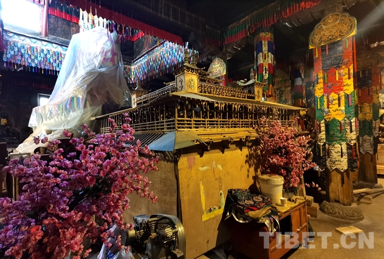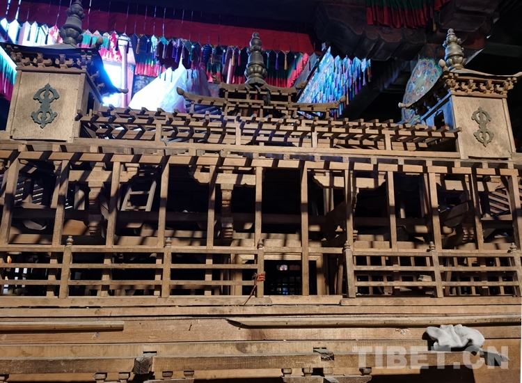 圖為桑耶寺金頂內(nèi)的柱拱梁