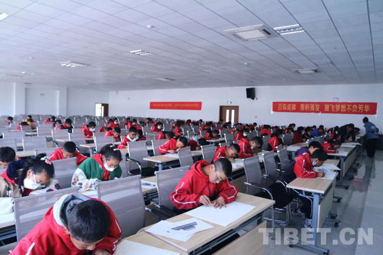 圖為參與活動的乃東區(qū)中學(xué)學(xué)生在畫畫