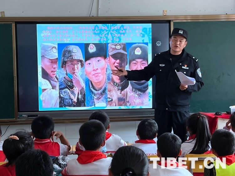 中國西藏網訊 “同學們,大家知道照片上這位英雄是誰嗎?”伴隨著民警周升展的提問聲,孩子們紛紛舉起手回答出了這位英雄——祁團長?!澳銈冋媛斆?,今天叔叔給大家講一講新時代衛(wèi)國戍邊英雄祁發(fā)寶團長的故事……”