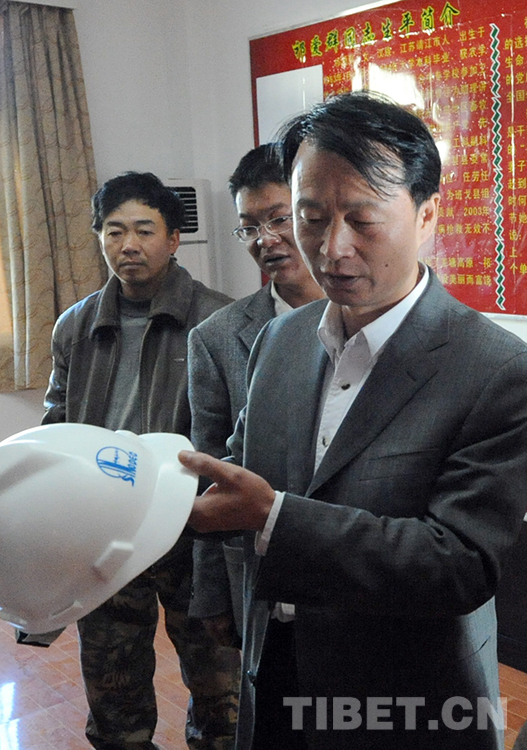 這是中國(guó)石化首批援藏干部李一超,在回憶他向祁愛群贈(zèng)送這頂?shù)V工帽的經(jīng)過(guò)(唐召明2009年8月12日攝)