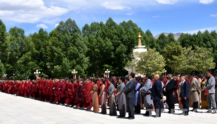 西藏自治區(qū)黨委常委、統(tǒng)戰(zhàn)部部長(zhǎng),區(qū)政協(xié)黨組副書記、副主席嘎瑪澤登出席儀式并勉勵(lì)經(jīng)師和學(xué)員們弘揚(yáng)愛國(guó)愛教、護(hù)國(guó)利民的優(yōu)良傳統(tǒng),切實(shí)增強(qiáng)參加“三個(gè)意識(shí)”教育的責(zé)任感、使命感,爭(zhēng)當(dāng)“學(xué)”的典型和“做”的楷模。