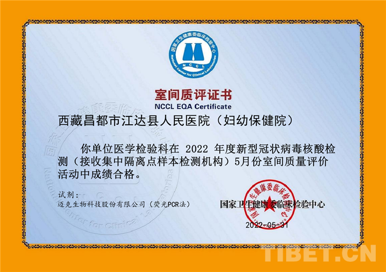 中國(guó)西藏網(wǎng)訊 近日,國(guó)家衛(wèi)生健康委臨床檢驗(yàn)中心公布了2022年4月和5月新型冠狀病毒核酸檢測(cè)(接收集中隔離點(diǎn)樣本檢測(cè)機(jī)構(gòu))的室間質(zhì)評(píng)結(jié)果,西藏自治區(qū)昌都市江達(dá)縣人民醫(yī)院核酸檢測(cè)實(shí)驗(yàn)室順利通過(guò)“國(guó)家衛(wèi)健委臨床檢驗(yàn)中心”新冠病毒核酸檢測(cè)室間質(zhì)評(píng),標(biāo)志著江達(dá)縣人民醫(yī)院新型冠狀病毒核酸檢測(cè)能力獲得國(guó)家權(quán)威機(jī)構(gòu)的認(rèn)可。