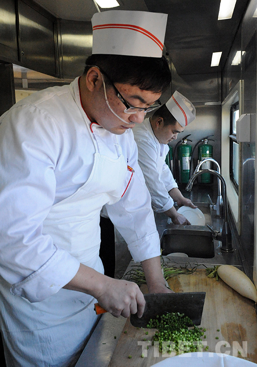我在北京鐵路客運(yùn)段京藏列車第二組的餐車?yán)锟吹?,列車在通過唐古拉山區(qū)段時(shí),餐車正在為旅客提供炒菜服務(wù)。我采訪的廚師長孫冠軍告訴我,京藏列車自開通運(yùn)營以來,除了像西紅柿炒雞蛋因高原沸點(diǎn)低而無法炒成片外,其他三四十種可口飯菜都能在列車運(yùn)行中的高海拔地段完成。