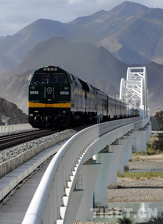這是由拉薩開往北京的京藏列車正在通過拉薩河特大橋(唐召明2010年07月7日攝)