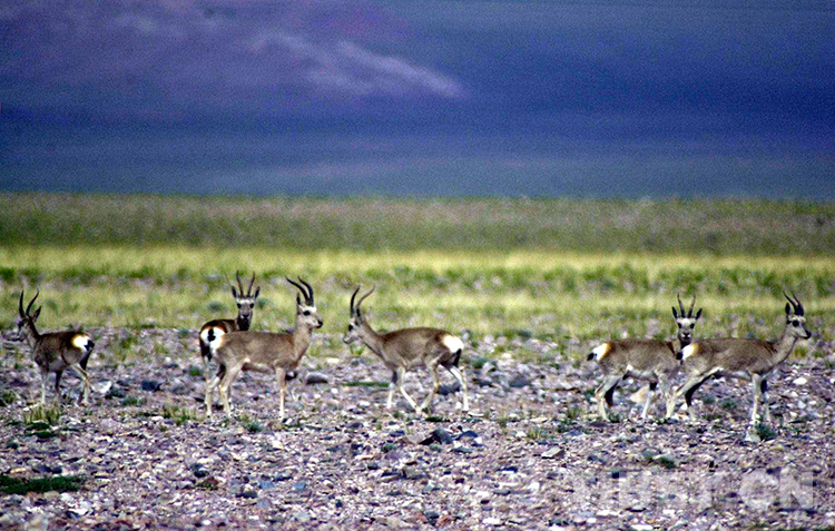 這是在羌塘國(guó)家級(jí)自然保護(hù)區(qū)棲息生活的國(guó)家二級(jí)保護(hù)動(dòng)物藏原羚(唐召明2001年攝)