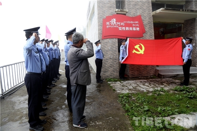 圖為民警參觀國(guó)旗阿媽黨性教育基地 攝影:尼瑪?shù)┰?/p>