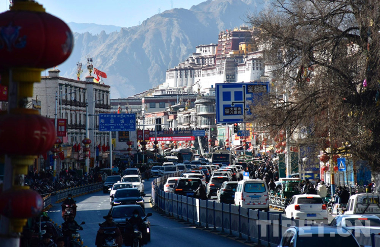 圖為前往拉薩古城八廓街區(qū)沿途風(fēng)光