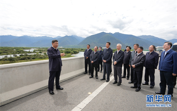 2021年7月21日上午,習(xí)近平總書記乘車來到林芝尼洋河大橋,考察雅尼濕地。遠(yuǎn)眺水波蕩漾、草木蔥蘢的雅尼濕地,聽取雅魯藏布江及尼洋河流域生態(tài)環(huán)境保護(hù)和自然保護(hù)區(qū)建設(shè)等情況。習(xí)近平強(qiáng)調(diào),要堅(jiān)持保護(hù)優(yōu)先,堅(jiān)持山水林田湖草沙冰一體化保護(hù)和系統(tǒng)治理,加強(qiáng)重要江河流域生態(tài)環(huán)境保護(hù)和修復(fù),統(tǒng)籌水資源合理開發(fā)利用和保護(hù),守護(hù)好這里的生靈草木、萬水千山。(圖片來源:新華網(wǎng) 攝影:新華社記者 李學(xué)仁)