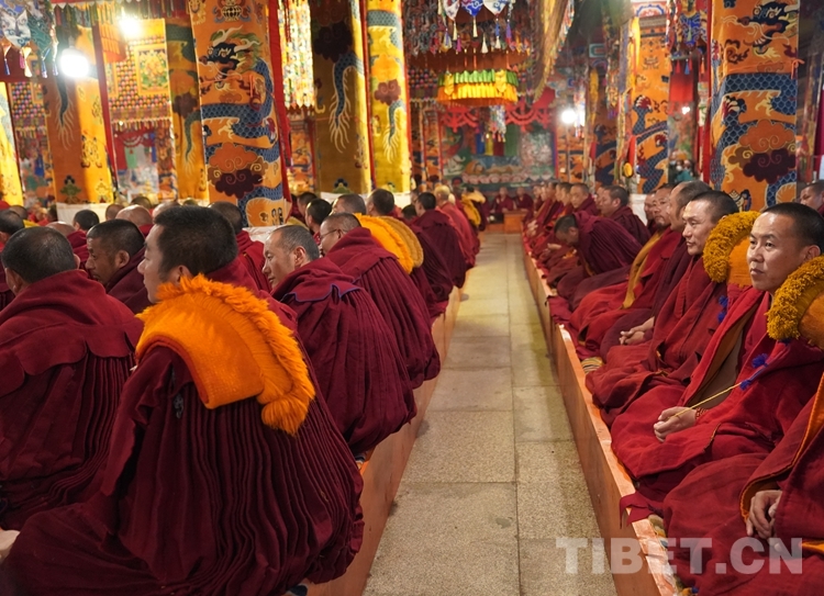 圖為2023年度西藏自治區(qū)藏傳佛教學(xué)經(jīng)僧人晉升格西拉讓巴學(xué)位夏季預(yù)考現(xiàn)場(chǎng) 攝影:王淑