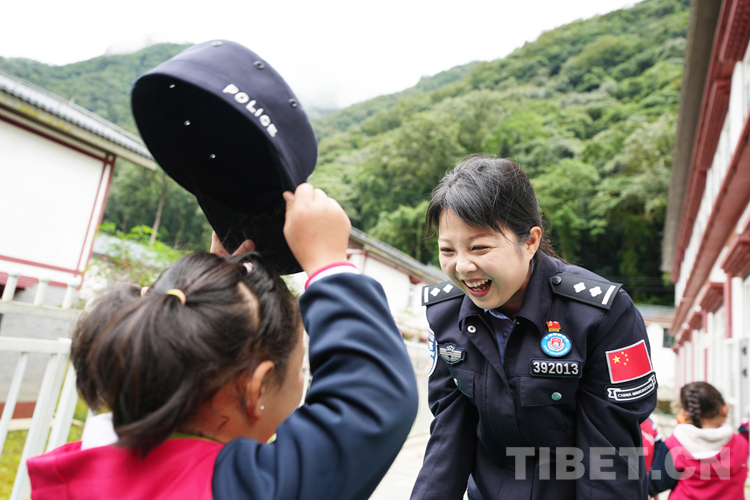 圖為亞東出入境邊防檢查站民警與龐達村雙語幼兒園小朋友一起玩耍