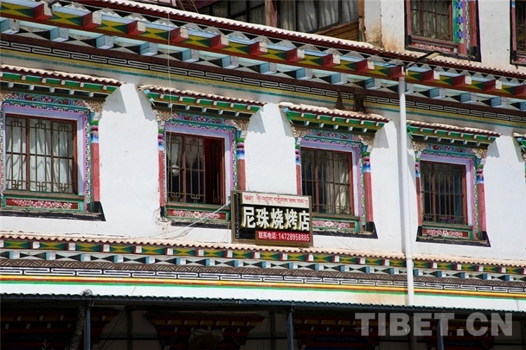 依山而建的藏式三層小樓里,丁增拉姆將房屋裝修得華麗亮堂,墻壁上繪有吉祥圖案,天花板與地板相接的立柱滿(mǎn)是精致的雕刻和彩繪,掛著吉祥的哈達(dá)。門(mén)外小院臺(tái)階旁的葡萄藤密密地纏繞在架子上,成串果實(shí)掛在枝頭。單獨(dú)分離出來(lái)的廚房和餐廳,也是孩子們的游樂(lè)場(chǎng),沐浴著陽(yáng)光下棋、讀書(shū),一片歡聲笑語(yǔ)??拷鼧求w的小小花壇自然隔開(kāi)了生活區(qū)和商業(yè)區(qū),一樓就是丁增拉姆家的尼珠燒烤店。沿著馬路的空地,搭建了長(zhǎng)長(zhǎng)的涼棚,夜晚在這里和三五好友吃著燒烤,吹著清涼的風(fēng),望著閃耀的星星,談?wù)勅松屠硐?,再舒服不過(guò)了。