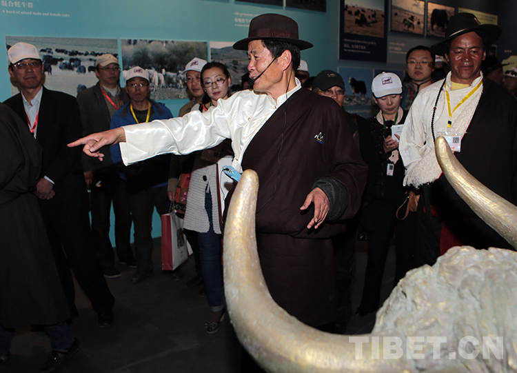 這是西藏牦牛博物館試運(yùn)行時(shí),吳雨初臨時(shí)擔(dān)當(dāng)講解員為觀眾作講解(唐召明提供,2014年5月18日攝)
