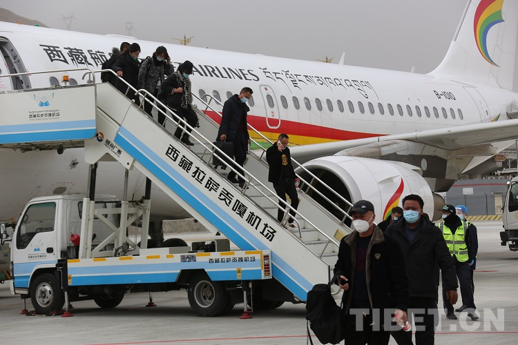 圖為飛機安全抵達(dá)拉薩貢嘎機場后乘客有序走下飛機 攝影:王佳豪
