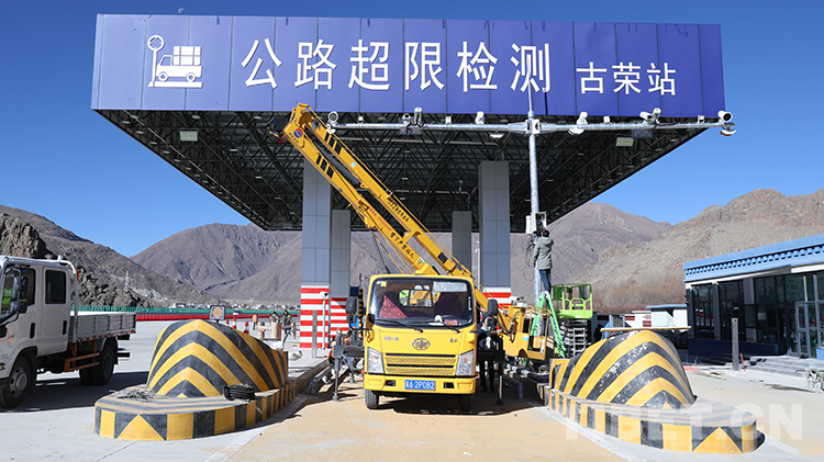 圖為工作人員在G6京藏高速公路那曲至拉薩段調(diào)試超限檢測(cè)設(shè)備