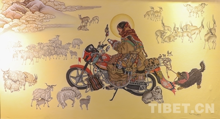 “畫家們在延續(xù)深厚傳統(tǒng)文化,彰顯西藏唐卡繪畫高超技藝的同時,不固守畫派風格特色,用創(chuàng)新的方式聚焦偉大時代,描繪美好生活,歌頌西藏與祖國同行的盛世圖景?!蔽鞑刈灾螀^(qū)文聯(lián)副主席尹小林說。