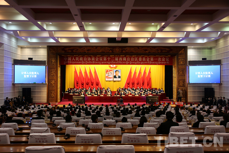 圖為西藏自治區(qū)政協(xié)十二屆一次會(huì)議第三次大會(huì)現(xiàn)場(chǎng) 攝影:王佳豪