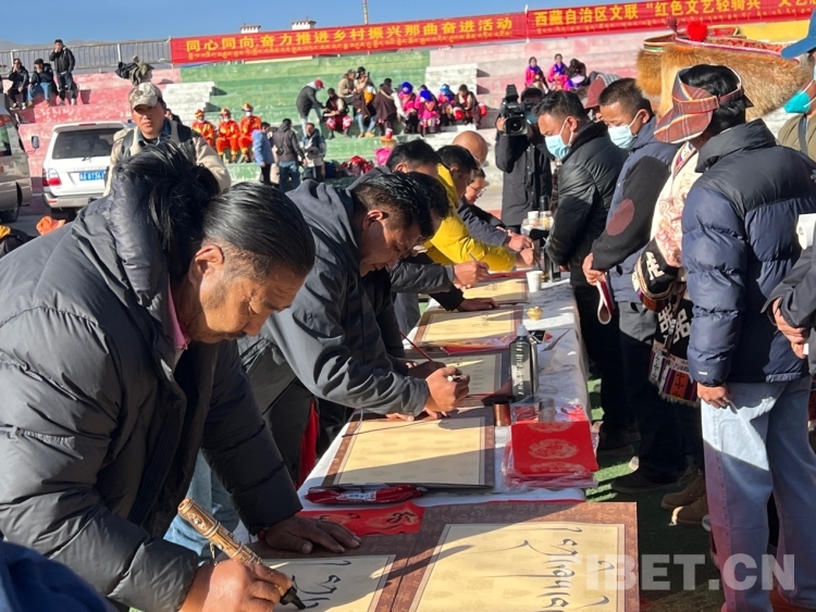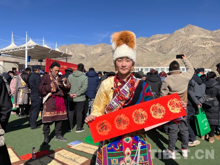 中國西藏網(wǎng)訊 2月16日,西藏自治區(qū)文聯(lián)主辦的“我們的中國夢”——文化進(jìn)萬家活動(dòng)在極高海拔生態(tài)搬遷安置點(diǎn)開展。在送“書法”現(xiàn)場,由西藏書法協(xié)會(huì)和山南市11位書法家為當(dāng)?shù)厝罕娝腿?00多張?jiān)⒁饷篮玫男履曜8:腿罕娖谕男履曜T傅??;顒?dòng)現(xiàn)場群眾絡(luò)繹不絕,大家心滿意足地拿著書法家為自己贈(zèng)送的精美“禮品”。一旁書法家們忙碌地為群眾書寫祝詞,另一旁群眾們晾曬著他們得到的書法作品,一時(shí)間現(xiàn)場成了“書法展”,時(shí)不時(shí)地有人前來參觀欣賞。(中國西藏網(wǎng) 記者/德吉卓瑪)