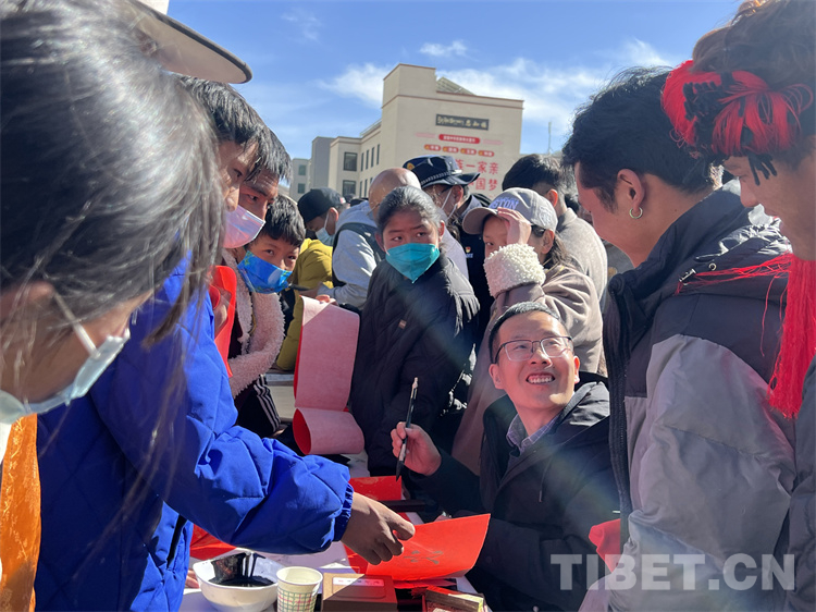 中國西藏網(wǎng)訊 進入二月后,西藏再次綻放春日姿態(tài)。2月16日,西藏自治區(qū)文聯(lián)在西藏山南市貢嘎縣森布日極高海拔生態(tài)搬遷安置點開展“我們的中國夢”——文化進萬家文藝輕騎兵文藝演出、送“書法”、拍“合家歡”、送“書籍”等活動。