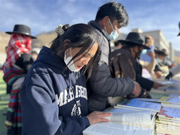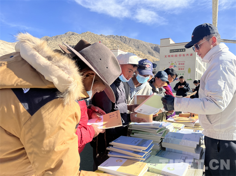 在送“書籍” 現(xiàn)場,《西藏文學(xué)》《西藏文藝》《邦錦梅朵》三個編輯部工作人員為現(xiàn)場群眾和當(dāng)?shù)?span style="text-align: center; background-color: rgb(253,242,234)">干部贈送書籍,當(dāng)?shù)厝罕姾蛯W(xué)生們紛紛前來翻看尋找自己喜歡的書籍,大家人手幾本書。“我平時喜歡閱讀藏文文學(xué)作品,這次要了兩本文學(xué)相關(guān)書籍拿回家閱讀”17歲的益西巴珍說。據(jù)了解,此次活動西藏文聯(lián)向熱愛閱讀的群眾和學(xué)生共贈送1500本(冊)文藝書籍和期刊。