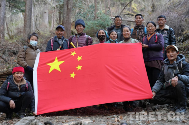 圖為玉麥鄉(xiāng)巡邊群眾巡邊路上展示國(guó)旗 攝影:趙振宇