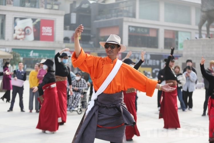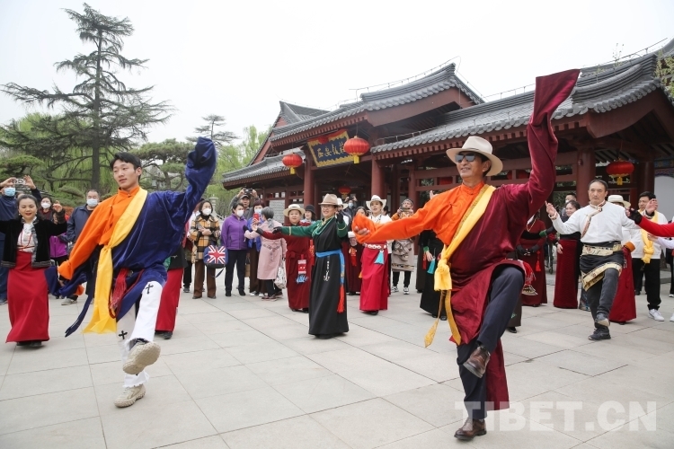 在大唐西市、興慶宮公園等地,沙多等多位藏舞推廣傳承人與西安當(dāng)?shù)劐伹f舞團(tuán)隊(duì)交流展演,現(xiàn)場氣氛熱烈。