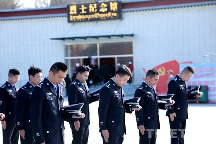 圖為西藏邊檢總站執(zhí)法調查支隊民警向烈士默哀