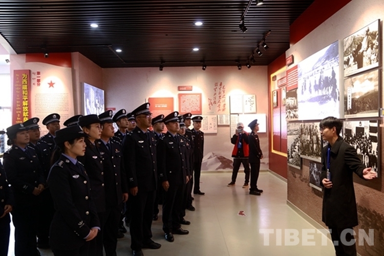 圖為西藏邊檢總站執(zhí)法調查支隊民警在烈士紀念館瞻仰烈士英雄事跡